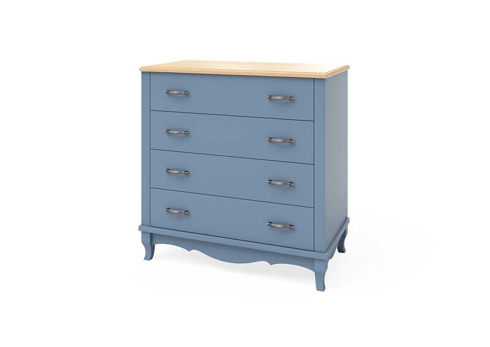 Утонченный и лаконичный комод из коллекции Кассис выполнен в стиле французского Прованса и станет прекрасным дополнением для спальни Вашей мечты. Комод выполнен из массива бука. Этот материла отличается своей уникальностью, долговечностью и экономичностью. Комод достаточно высокий и очень вместительный, а благодаря свои резным ножкам он выглядит очень изящно и гармонично. Цветовая гамма отражает собой натуральные оттенки милой французской деревушки: голубой, слоновая кость, оливковый, венге и серый. При производстве мебели используется мебельная фурнитура GTV. За небольшую доплату все выдвижные ящики комода можно укомплектовать доводчиками.