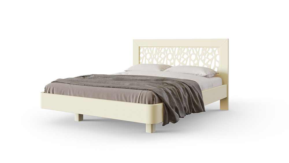 Кровать «Веро» с высоким, воздушным и стильным резным изголовьем производится из 100 % натурального массива бука или ясеня, оснащается в стандартной комплектации металлическим основанием Dream, и отличается скругленными углами геометрии изножья кровати, что сводит к минимуму риск случайных травм об углы низко расположенной мебели.