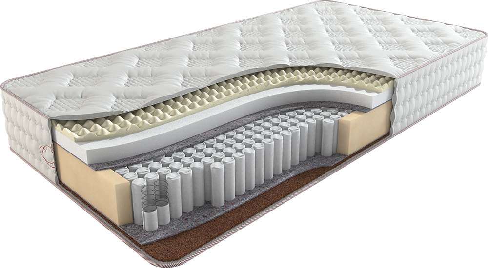 Массажный натуральный латекс на подложке из пены с эффектом памяти обеспечивает мягкую опору для изгибов тела. Точечная поддержка позвоночника достигается за счет блока пружин с увеличенным количеством элементов, что способствует правильной анатомической осанке и предотвращает боли в спине.
