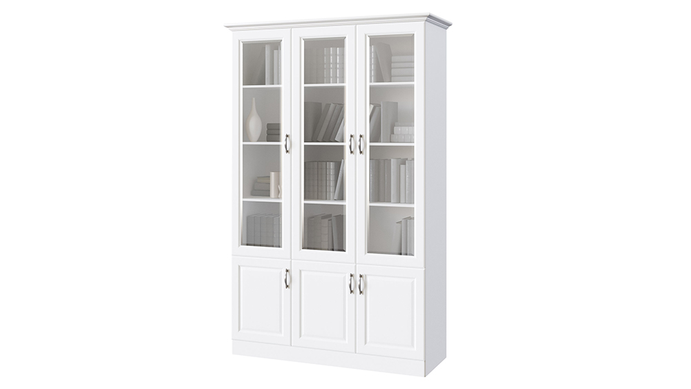 Трёхстворчатый шкаф библиотека коллекции Эдем в классическом стиле — это не только удобное место хранения, но и красивый предмет декора интерьера. Ведь на полках можно создать красивую композицию из книг с похожими по цвету обложками, интерьерными статуэтками или другими вещами, а через стеклянные дверки шкафа их будет хорошо видно, но при этом они будут защищены от попадания пыли. А в нижних ящиках шкафа можно удобно расположить документы и другие вещи, которые вам хотелось бы спрятать с видного места. Шкаф может быть выполнен полностью из натурального массива бука или ясеня или же, при желании немного удешевить изделие, мы можем изготовить боковины шкафа из ЛДСП. Обращаем ваше внимание, что такое решение никак не повлияет на визуальный вид товара. Внешние габариты библиотеки: 8 см. к ширине по внешним габаритам карниза. Требуется сборка.