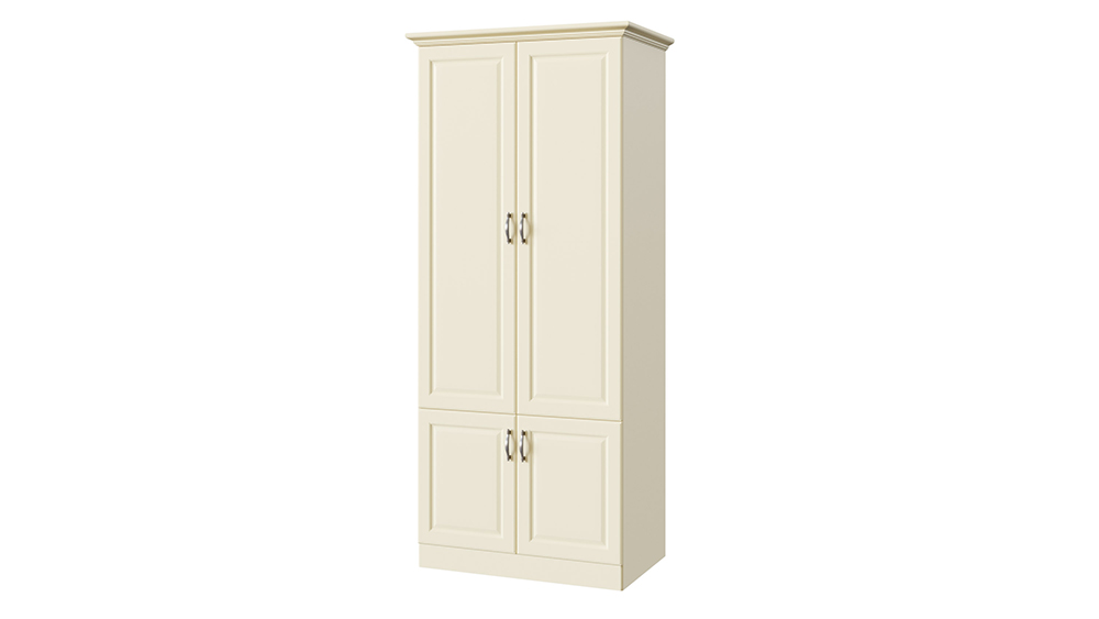 Классический шкаф, созданный в едином стиле с коллекцией Эдем — изделие без которого не возможно себе представить спальню. Корпус шкафа может быть изготовлен как из массива бука и ясеня, так и из массива мягколиственных пород, что делает его стоимость еще более демократичной. Двух створчатый шкаф имеет 3 базовые комплектации: c антресольной секцией в верхней (2-3) или нижней части (2-1) шкафа, или двумя выкатными ящиками (2-2) в нижней части шкафа. Фасады шкафа могут иметь встроенные зеркала, как на лицевой части фасада — по размеру филенчатой части, так и на внутренней стороне фасада. Распашные дверцы шкафа оснащены петлями с системой до-закрытия в базовой комплектации. В большей секции шкафа предусмотрена штанга для плечиков. По желанию шкаф может быть оснащен любым количеством полок.