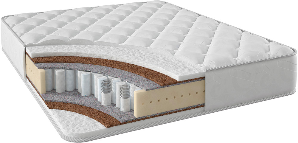 Stories Символ Плюс ТФК – модель матраса с независимым пружинным блоком и дополнительными слоями из: термовойлока, холлофайбера, кокосовой койры. Высота изделия – 23 см. Нагрузка – не более 120 кг на одно место. Матрас подходит парам с разным весом, а также людям с проблемами опорно-двигательного аппарата (перед покупкой необходима консультация специалиста). Матрас Символ Плюс ТФК прочен, надежен, не склонен к деформации. Модель прогибается под телом точечно, и очень быстро восстанавливает форму. Чехол отшивается из хлопкового жаккарда или плотного трикотажа.