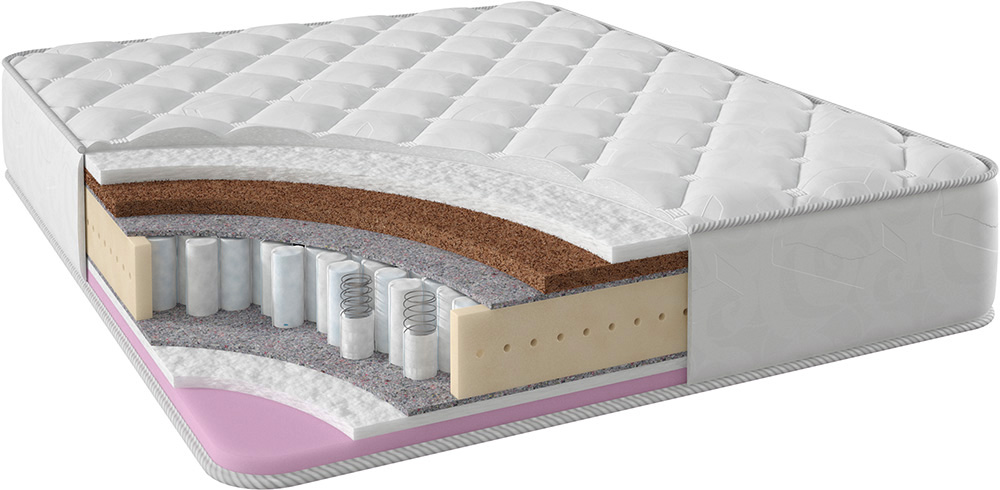 Двусторонний матрас Stories Стратто ТФК обладающий ортопедическим эффектом снабжен независимым пружинным блоком, слоями из термовойлока, ППУ, кокосовой койры и холлофайбера. Модель обладает точечной поддержкой и подходит для пар с ощутимой разницей в весе. Высота изделия – 26 см, максимальная нагрузка на одно место – не более 130 кг. Чехол из хлопкового жаккарда способствует высокой степени циркуляции воздуха. Наполнители служат отличным регулятором жесткости, благодаря чему достигаются ортопедический и анатомический эффекты. Матрас Стратто ТФК комфортен, долговечен, не склонен к деформации.