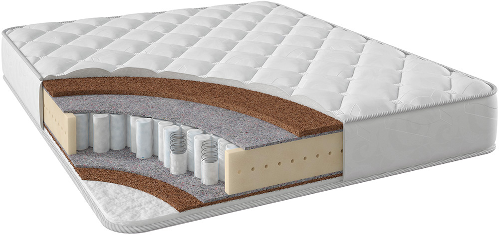 Stories Традо ТФК – жесткий матрас с ортопедическим эффектом по бюджетной цене. В качестве наполнителя матраса выступает латексированная кокосовая койра, основным плюсом которой является равномерное распределение нагрузки, что отлично подходит парам с ощутимой разницей в весе. Достойно поддерживает позвоночник, корректирует осанку и рекомендован людям с проблемами опорно-двигательного аппарата (перед покупкой необходима рекомендация специалиста). Нагрузка на одно место – не более 130 кг. Наполнители: - блок независимых пружин TFK, обеспечивающий точечную поддержку; - термовойлок, помогающий в создании комфортного микроклимата; - койра кокоса, отвечающая за правильное распределение нагрузки; - холлофайбер, жесткая вата, являющаяся искусственным аналогом кокосовой койры. Чехол отшивается из жаккарда со стежкой на синтепоне.
